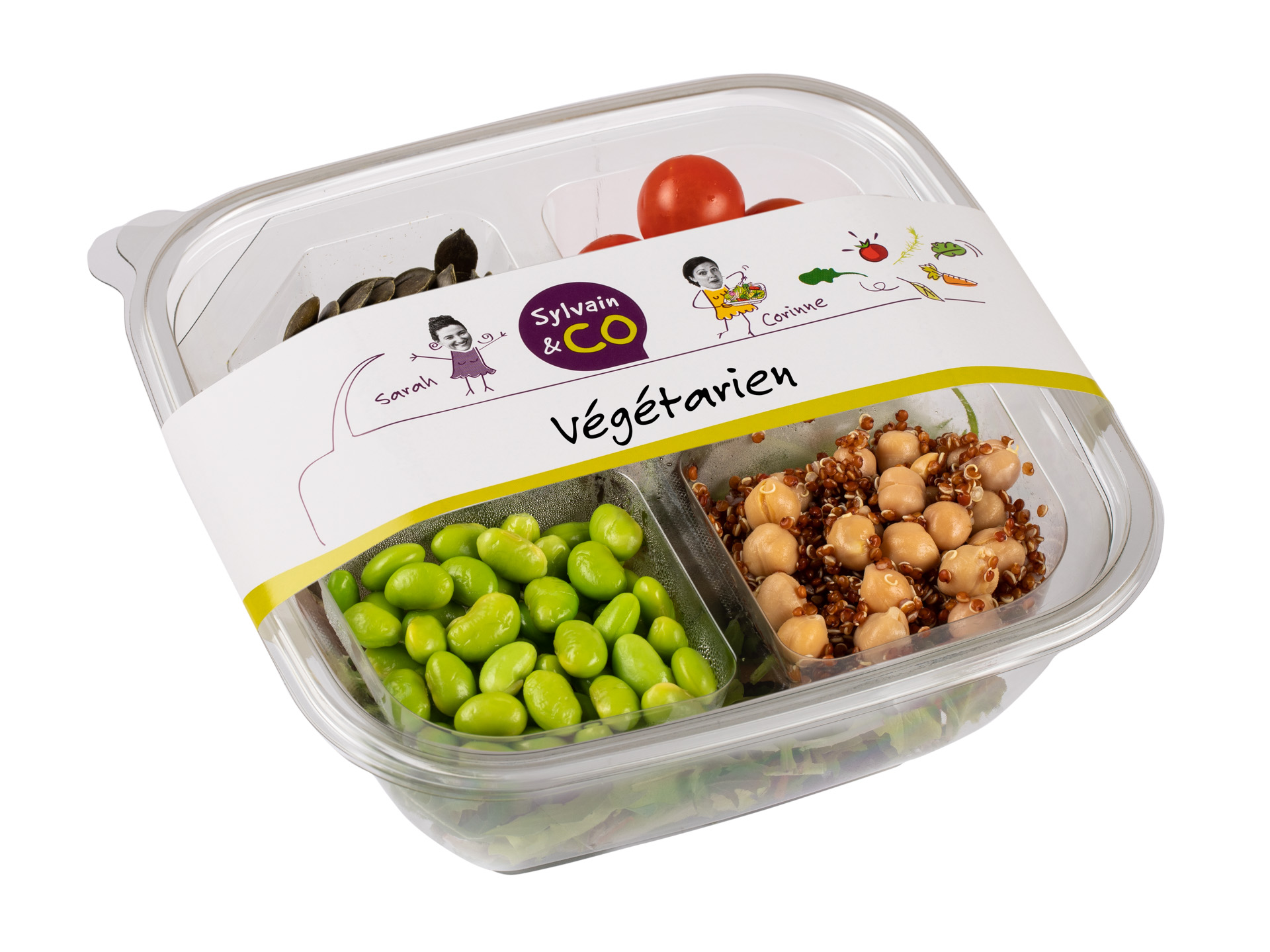 Composition : tomates cerises, sauce Grand-Mère balsamique (contient SULFITES), EDAMAME, jeunes pousses, quinoa, graines de courge, pois chiches, rucola, carotte